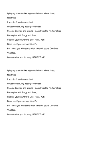 Rap and poetry are actually the same thing. I'm going to post a few short poems i've made as a greeting. Rapping (also rhyming, spitting, emceeing or mcing) is a musical form of vocal delivery that incorporates rhyme, rhythmic speech, and street vernacular, which is performed or chanted in a variety of ways, usually over a backing beat or musical accompaniment. Gonna rap while i'm napping and looking sweet gonna rap while i'm padding on the balls of my feet. The question that arises is therefore whether the rap music is poetry. All together children, now clap! The example below is a retelling of a traditional tale. The words of a poem are arranged in lines and. These features play a big role in enhancing sound patterns. Snoop dogg, tupac, biggie smalls, eminem, are good examples. Squirrel on a wire waking up this rainy day. This verse is a prime example of the lyrical content of rap music because it is telling a story, using a controversial metaphor to spread a possibly controversial opinion. There is a soundtrack that individuals live their lives too.