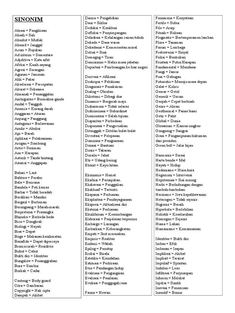 Paket Hapalan Verbal Sinonim Antonim Daftar Hafalan Sinonim Kata Pdf Download Gratis from docplayer.info Check spelling or type a new query. We did not find results for: Maybe you would like to learn more about one of these?
